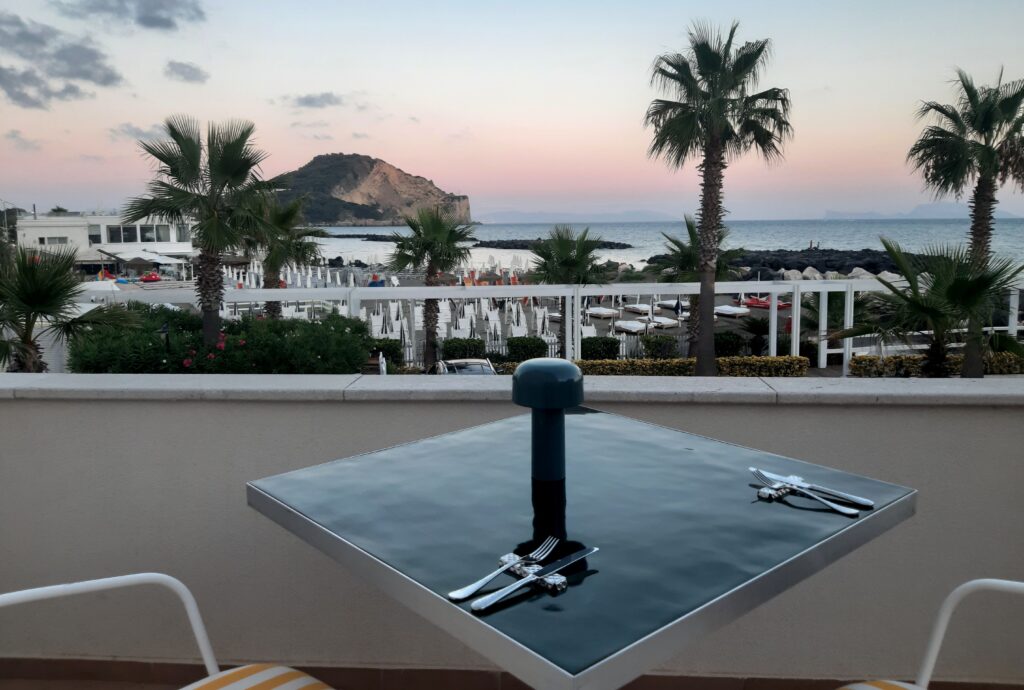 La mattina inizia dal Konka Beach, il lido attrezzato che guarda Capo Miseno e Procida e Capri in lontananza È possibile stuzzicare qualcosa al volo nella buvette o salire al primo piano della struttura principale, per un pranzo veloce o una cena romantica al ristorante gourmet Cordaia, con due menù degustazione e una valida proposta à la carte. Il nome trae spunto dal rinvenimento in zona di semi di lino e di canapa, utili alla coltivazione delle piante da cui estrarre le materie prime per creare corde da navigazione.