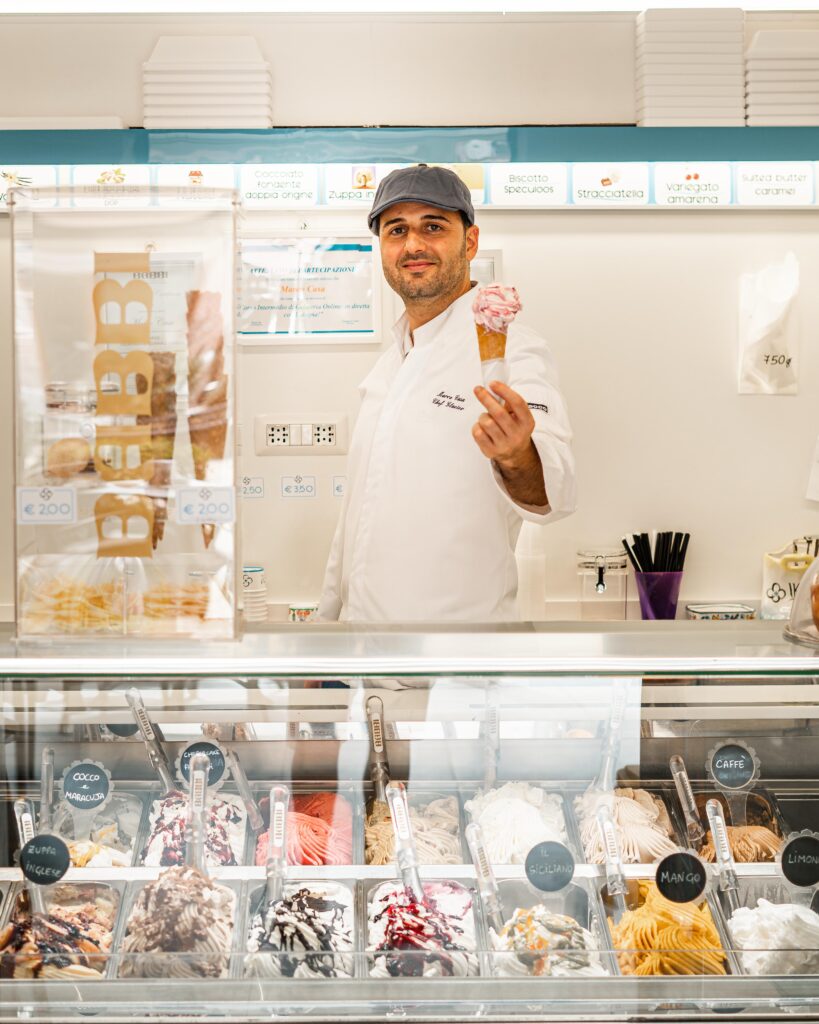 “Il progetto era già concreto”, racconta Marco a 20Italie, “ma il mondo faticava a ripartire, le persone avevano paura, così ho aperto questo piccolo locale vicino casa, in un posto isolato. Oggi la più grande soddisfazione è vedere tre o quattrocento persone che affollano la piazza solo per venire a gustare i miei gelati.”
