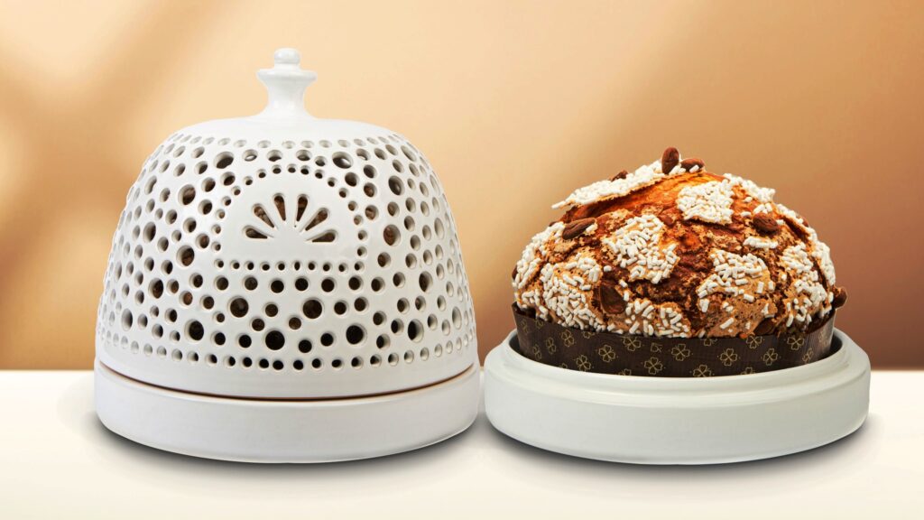 Se il panettone non è figlio della tradizione di Puglia, bisogna dire che molte cose sono cambiate e le tavole di casa, ormai, si sono aperte alle declinazioni più fantasiose del gran lievitato milanese. Sono molti i mastri panificatori che in questi anni si sono cimentati a trovare la ricetta del panettone pugliese per eccellenza, ma Eustachio Sapone ha trovato la formula perfetta con il suo Pugliettone. Realizzato interamente con ingredienti regionali, omaggia la regione così, arrivando in tavola con un concept ben definito. “Arancia candita del Golfo di Taranto, finocchietto selvatico e odori della Murgia, Burro di Turi, fichi dottati del Salento e la tipica glassa realizzata con le mandorle di Toritto.