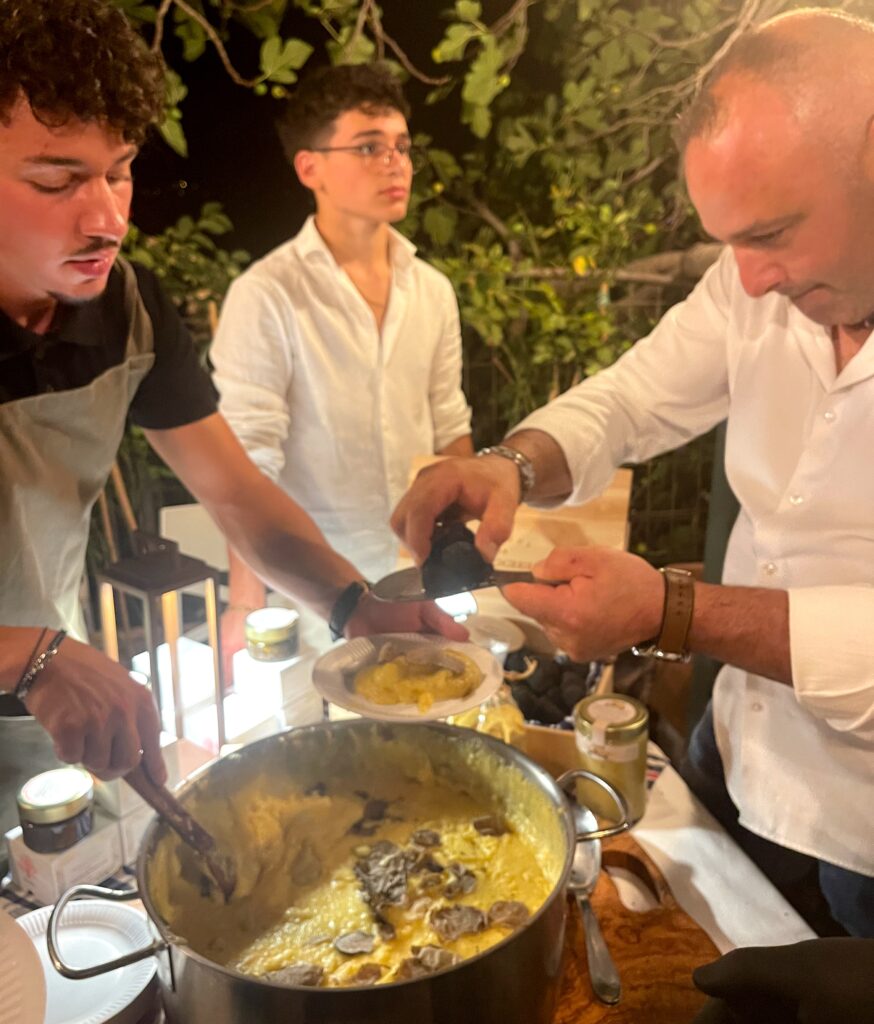 Ad allietare ulteriormente i presenti sono stati i piatti preparati con maestria dalla cucina di Locanda Pancrazio, coadiuvata purtroppo a distanza dallo chef Pietro Parisi. L’evento è iniziato con un aperitivo che ha introdotto gli ospiti ai sapori freschi e autentici della Campania, con antipasti creativi e sfiziosità che esaltavano ingredienti quali: pomodori, mozzarella di bufala, basilico e olio extravergine d’oliva. L’associazione “Pescatori di Castellabate” ha poi proposto la tradizionale “cunzatura” e un delizioso e delicato pacchero con scorfano e aragosta.