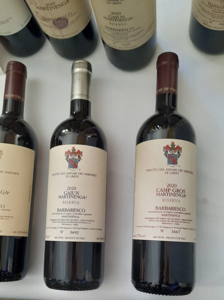 Barbaresco Camp Gros Martinenga 20200 Marchesi di Grésy – Rosso granato dalla sfumatura aranciato, libera sentori di mammola, frutti di bosco, ciliegia, prugna e spezie dolci. La piacevolezza stimola il lungo ed appagante sorso. Interminabile.