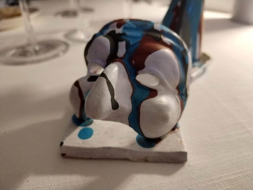 Il Nerino Casertano, pancia di maialino nero casertano cotta a bassa temperatura, ha dato il meglio di sé per la tenerezza delle carni e il suo fondo di cottura in agrodolce, quasi a ricordare il pork adobo filippino, eccetto che per le speziature e l’abbinamento con la mela annurca. Verve gustativa e territorialità a un piatto decisamente succulento e bilanciato.