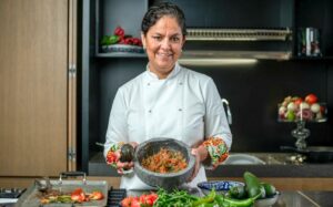 Nel pentolone del tempo si leva un profumo. Il viaggio attraverso gli elementi primordiali, le spezie, la terra e il fuoco, due oceani, le foreste verdi, l’agave blu e il pozole che riempie l’aria. Il mais, dono sacro, macinato con cura, diventa tortilla tonda come la pancia del mondo, letto di gioia per carne, pesce,