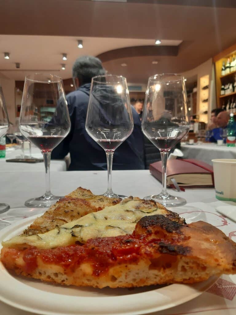 Curiose ed eleganti le incursioni di altre uve come Riesling Italico, Sauvignon Blanc e Merlot, che abbiamo degustato alla Panetteria di Stefano Pagliuca – I sapori della tradizione – a Melito di Napoli (NA). Etichette come Lame del Sorbo, dedicate ai terreni a terrazzamento tipici dell’areale (le cosiddette “lame” simili per etimologia al termine utilizzato in Toscana). Alla fine del percorso, gli immancabili assaggi in abbinamento con le pizze artigianali di Stefano hanno chiuso in bellezza una serata densa di cultura enogastronomica.