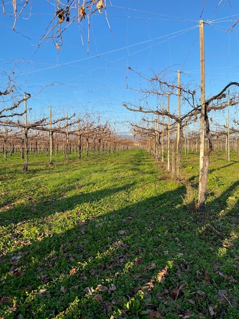 Finalmente arriva l’incontro con la Bellussera da Tenuta Bonotto. Riccardo Bonotto ci conduce nei vigneti con il trattore, addentrarsi sotto i tralci, ascoltare la storia di questa famiglia che dal 1870 porta avanti con dedizione l’attività vitivinicola, è veramente emozionante. Ma cos’è la Bellussera? E’una tecnica di allevamento della vite ideato alla fine dell’800 dai fratelli Bellussi proprio in questa zona, prevede un sesto d’impianto con pali di legno alti quattro metri e collegati tra loro con fili di ferro disposti a raggi, una vera opera d’arte.