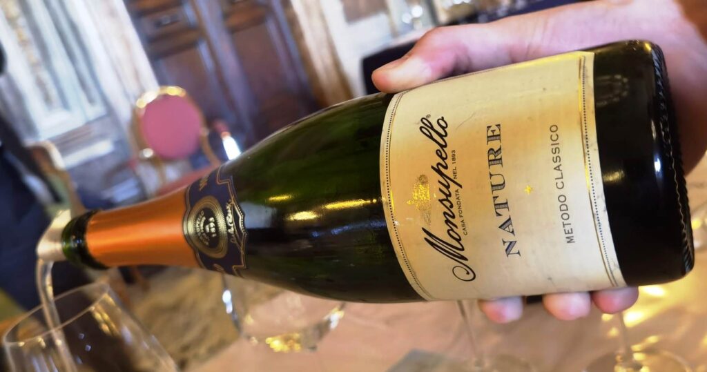 VSQ Pinot Nero Metodo Classico pas dosè Monsupello: azienda che conduce circa 50 ettari vitati su terreni calcareo-gessosi in Oltrepò Pavese. Il vino affina in acciaio e non svolge la malolattica; in primavera vengono assemblati i vini ottenuti dalle diverse parcelle, segue la seconda fermentazione e una sosta di 40 mesi sui lieviti. Il colore di questo spumante è sempre luminoso ma sicuramente di intensità cromatica maggiore, i profumi ricordano la mela cotogna, la frutta candita, la renetta, il pan brioche e la pietra focaia. Vivace freschezza, che rende l’assaggio di squisita piacevolezza.