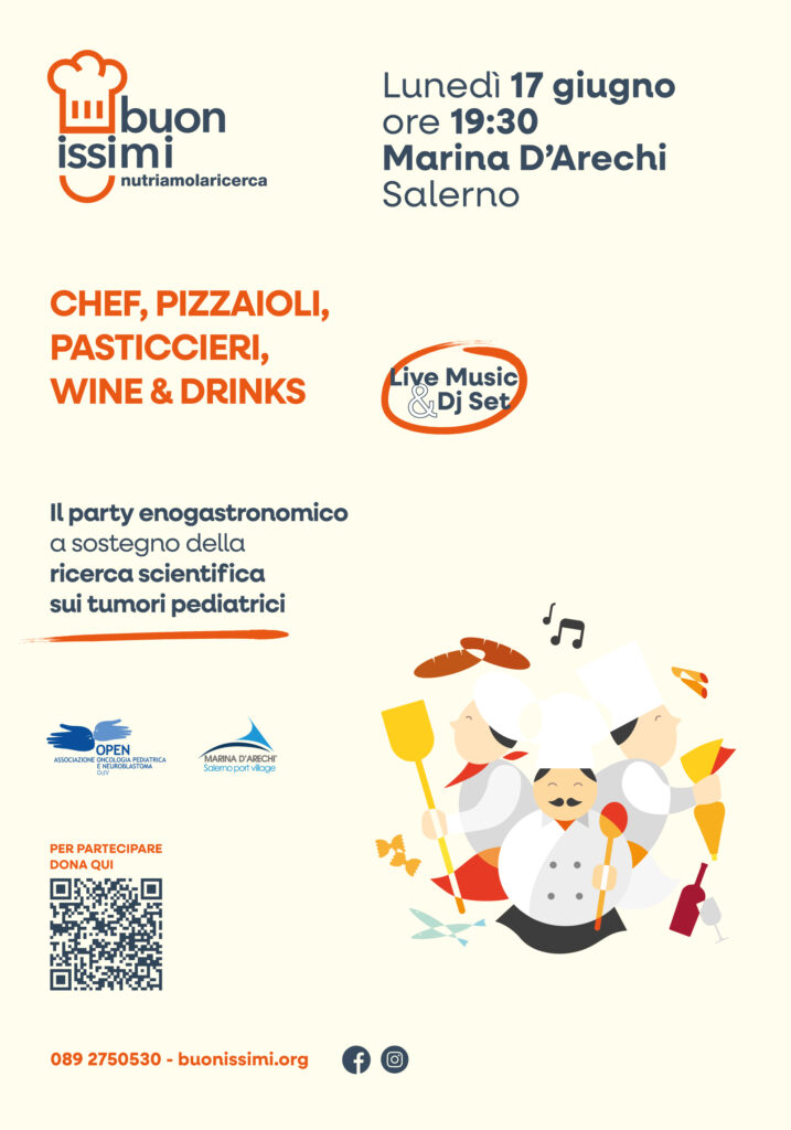 Salerno, 6 maggio 2024 – Torna l’atteso evento di beneficenza Buonissimi per la sua sesta edizione, che si terrà il 17 giugno 2024 dalle ore 19:00 nella splendida cornice del Porto di Marina d’Arechi a Salerno. Il tema principale è Nutrire la ricerca dalla A alla Z, con l’obiettivo di raccogliere fondi. Quest’anno Buonissimi sostiene un nuovo progetto triennale di ricerca scientifica dal nome Editor: “Sequenziamento di nuova generazione ed editing genomico per identificare fattori di rischio genetico come bersagli terapeutici per la cura dei tumori pediatrici”.