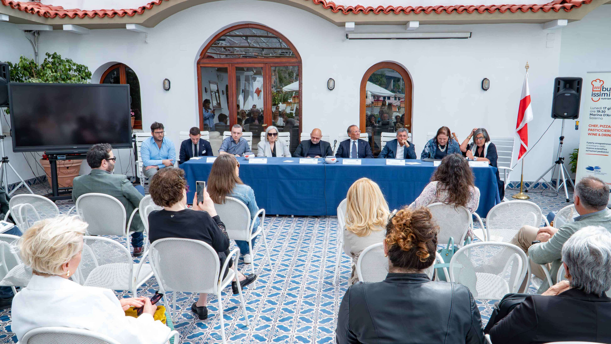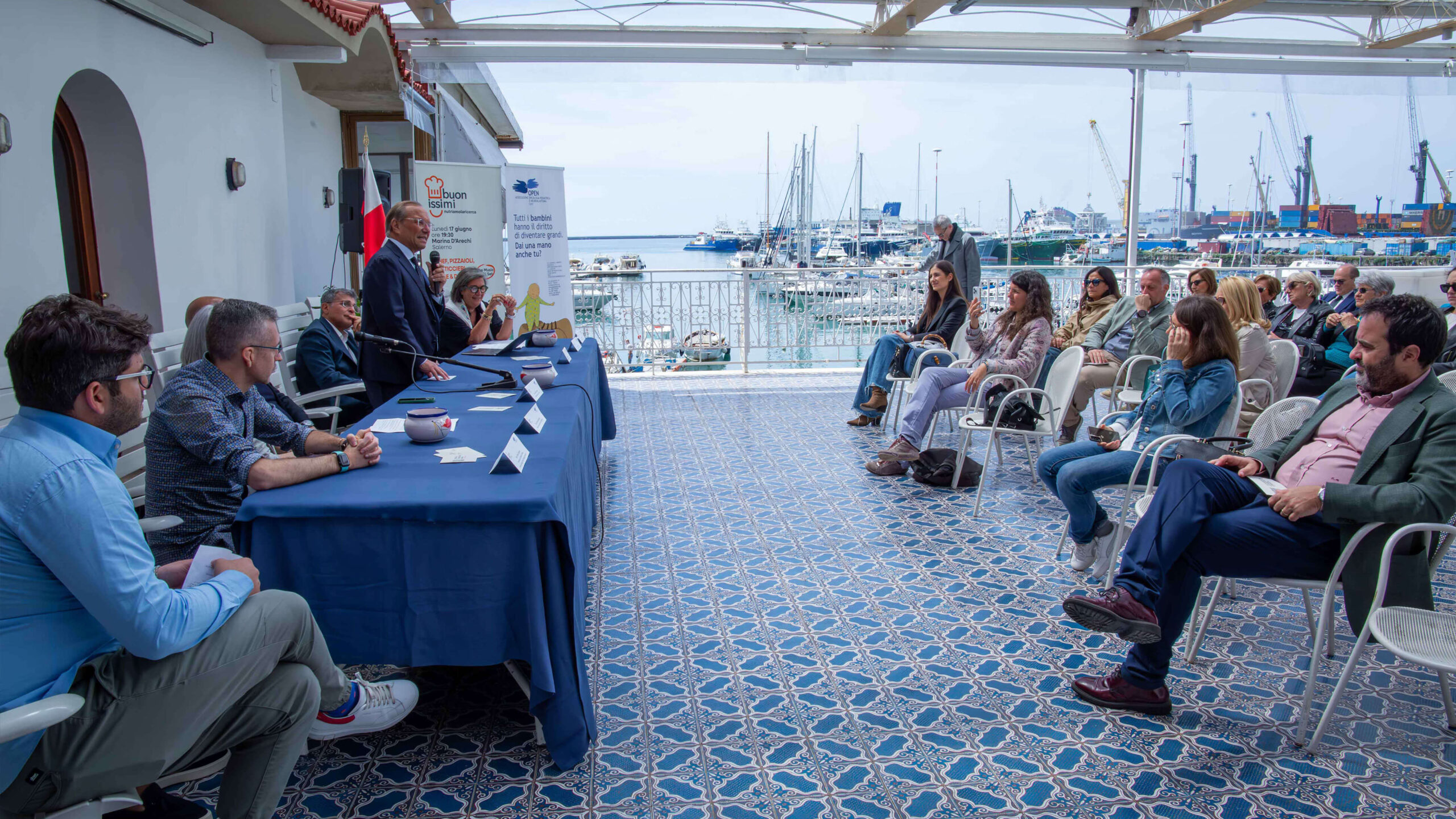Sono intervenuti la dott.ssa Anna Maria Alfani, Biologa e Presidente dell’Associazione Oncologia Pediatrica e Neuroblastoma – OPEN OdV, il dott. Mario Capasso, Professore Associato in Genetica Medica Università degli Studi di Napoli Federico II, il dott. Agostino Gallozzi Presidente Gallozzi Group SpA, le Sig.re Paola Pignataro e Silvana Tortorella, ideatrici e coordinatrici di Buonissimi, il Dott. Giovanni Ricco presidente del Circolo Canottieri Irno di Salerno ed il Dott. Dario Loffredo Assessore Commercio, Urbanistica – Lavori pubblici del Comune di Salerno.