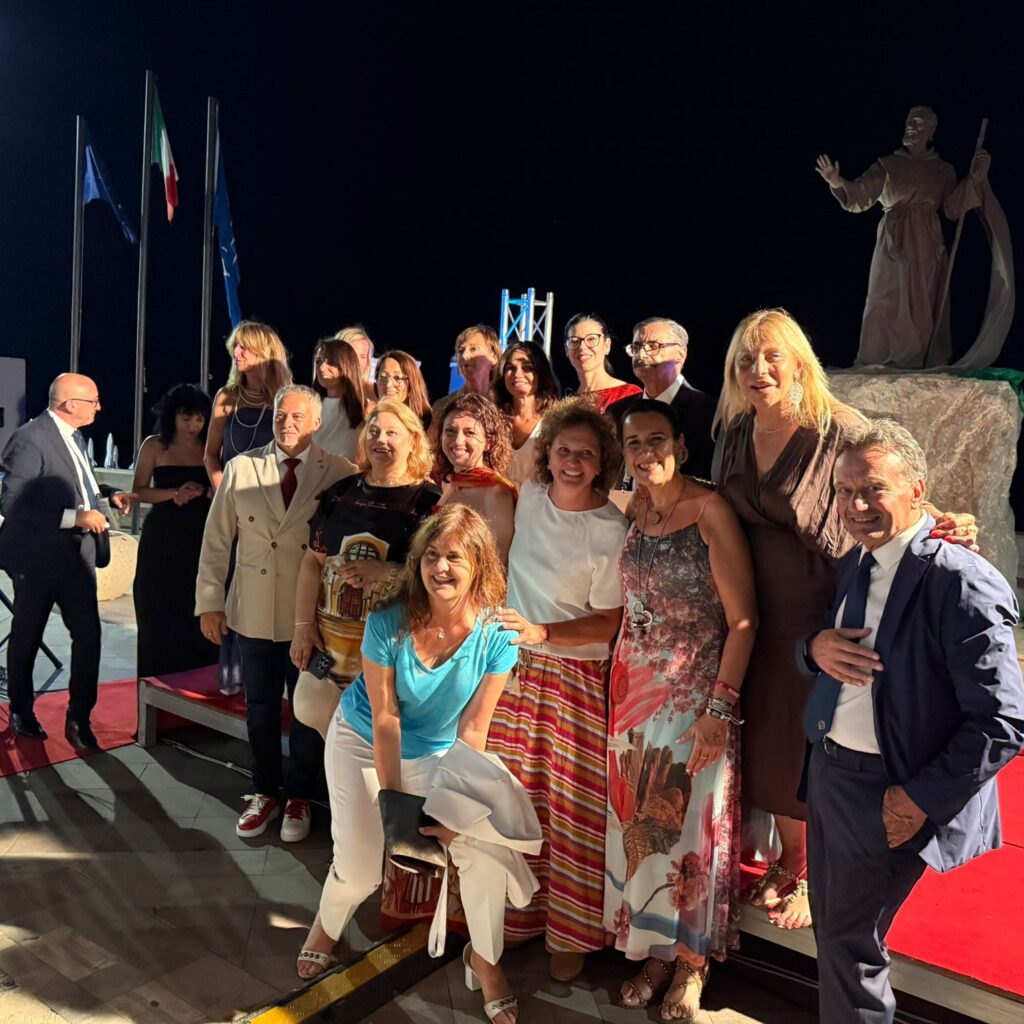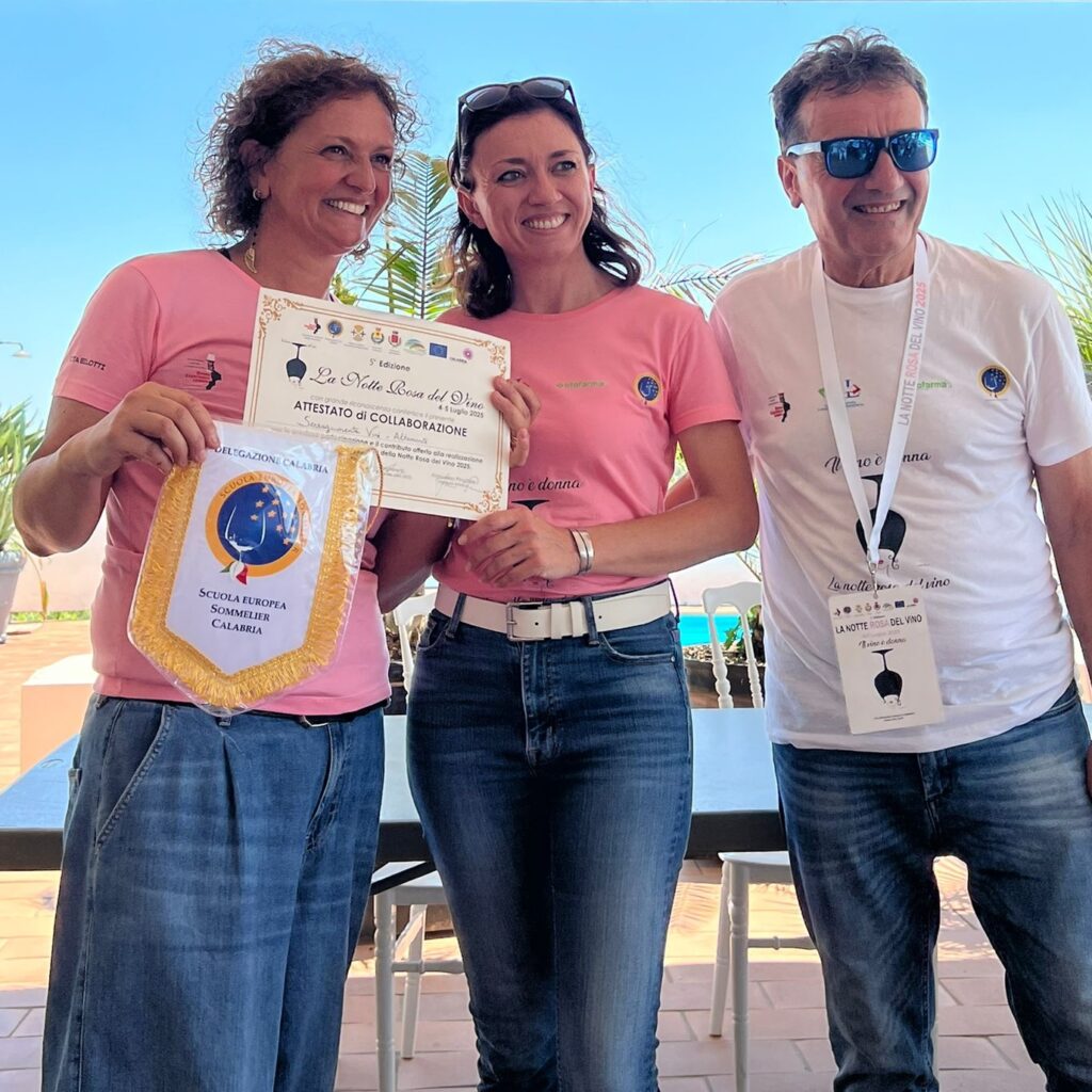 A seguire, il viaggio verso Tenuta del Castello, nuova tappa di un itinerario che intreccia passato e futuro, architettura storica e visione enologica contemporanea. E proprio qui, tra mura antiche e sguardi rivolti avanti, si è svolta la cerimonia di premiazione, cuore simbolico della Notte Rosa del Vino. Sul lungomare di Trebisacce, davanti a un pubblico attento e partecipe, le protagoniste del cambiamento sono salite sul palco per ricevere un riconoscimento non solo professionale, ma anche umano: una mattonella in ceramica realizzata dal laboratorio artistico “I Sogni di Milù”, opera che racchiude delicatezza, artigianalità e memoria.
