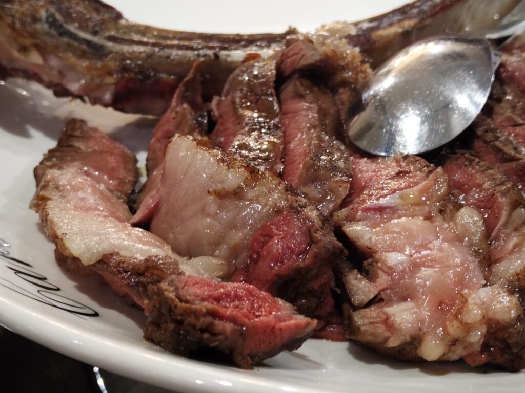 Eccellente la marezzatura e frollatura delle carni proposte, tra taglio alla fiorentina, tomahawk, filetto e costate da pregiate razze bovine. A coronamento della serata un piacevole tiramisù.