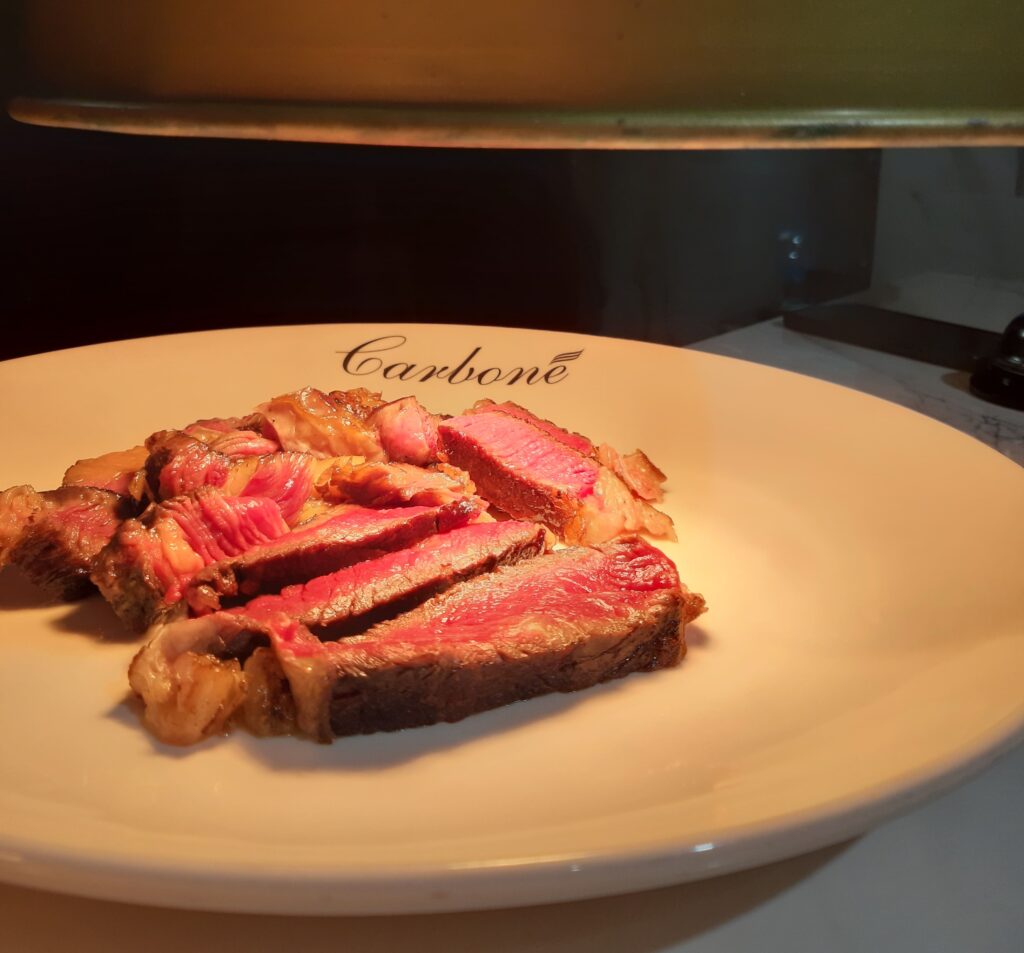 La carta dei vini conta circa 450 etichette; costruita intorno ai rossi, vanta interessanti incursioni di referenze naturali e champagne di cui, a breve, Raffaella prenderà le redini da aspirante sommelier. Ultima nota a margine la scelta fondamentale del legno utilizzato per la brace. Quanto più neutro possibile per non rovinare gli aspetti organolettici della carne. Da Carbonè Meat House si utilizza unicamente legno di leccio… e tanto amore.