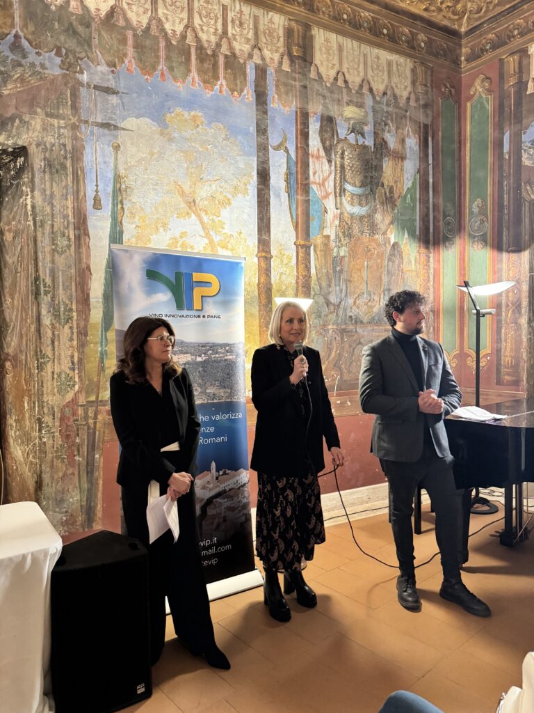 Vino, Innovazione e Pane: tre parole che racchiudono la missione della nuova Rete d’Impresa di Filiera dei Castelli Romani “V.I.P.”, presentata ufficialmente il 13 dicembre nella prestigiosa cornice di Palazzo Sforza Cesarini a Genzano di Roma. Un progetto che punta a valorizzare le eccellenze enogastronomiche locali e a promuovere uno sviluppo integrato del territorio, grazie al finanziamento della Regione Lazio e alla partecipazione di 21 aziende della zona.
