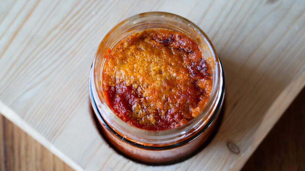 Ciò che trovate nel piatto nasce però 2 anni prima, dai fiori impollinati e dal bulbo che cresce sottostante. Il fiore è importante per dare origine ai semi, senza i quali non si potrebbe replicare l’intero processo produttivo. La successiva raccolta ed essiccatura delle cipolle in celle frigo richiede tempi biblici, utili ad addolcire le note odorose più pungenti e rendere il sapore equilibrato. La selezione viene fatta rigorosamente a mano da personale esperto, formatosi sulle antiche tradizioni contadine delle donne anziane del paese. Tutto si recupera e ricicla, comprese le tuniche per l’estrazione dei colori da utilizzare come inchiostro industriale.