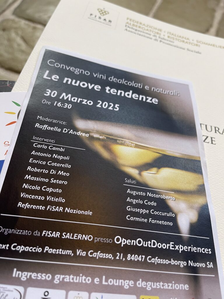 Il convegno, organizzato da FISAR Salerno, moderato da Raffaella D’Andrea, si è tenuto il 30 marzo 2025 al Next – ex Tabacchificio di Capaccio Paestum – con i relatori: l’Assessore all’Agricoltura Regione Campania Nicola Caputo, Massimo Setaro, Vincenzo Vitiello, Gaetano Prosperini, Michele D’Argenio, Enrica Cotarella, Antonio Napoli (AgroCepi).