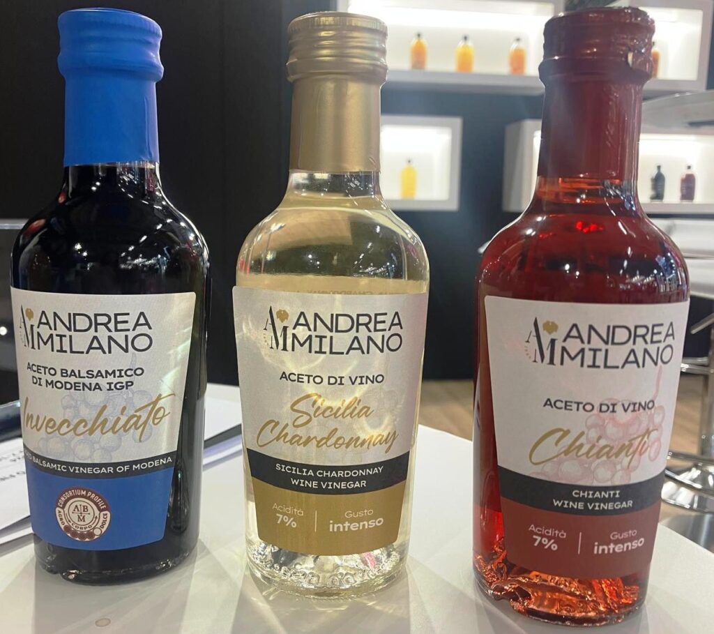 Negli anni ’90 la quarta generazione, guidata da Andrea e Francesco, ha rappresentato una forte spinta per la crescita dell’azienda, puntando all’ internazionalizzazione ed acquisendo una storica acetaia di Modena, divenuta oggi il vanto e l’orgoglio dell’Azienda che ha consentito l’allargamento della gamma con la produzione dell’Aceto Balsamico di Modena IGP. Giunta oggi alla quinta generazione, con l’ingresso in azienda di Fabio e Marcello, l’Acetificio Andrea Milano si posiziona come una delle più importanti realtà produttive del settore con tre stabilimenti in Italia ed un export in 65 paesi nel mondo.
