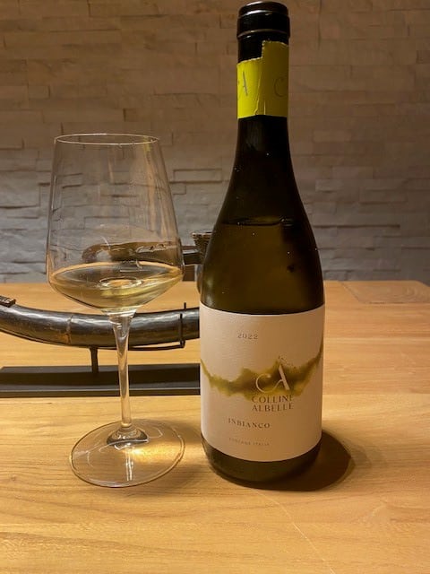 Colline Albelle Inbianco unVermentino in purezza con una particolarità: il suo grado alcolico è di soli 10 gradi, primo e unico Vermentino italiano con questa gradazione. L’ispirazione per produrre questo vino, racconta Julien, arriva da una vendemmia fatta in Champagne. Colpito dalla trama aromatica delicata e floreale della base spumante, che nella produzione degli spumanti non è bevibile, decide di creare un vino fermo con le stesse caratteristiche aromatiche.