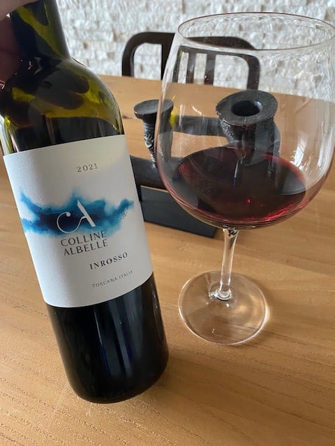 Colline Albelle Inrosso, Merlot in purezza rivisitato. La particolarità è data dalla lavorazione che viene fatta in vigna durante la fase vegetativa della pianta. Una procedura particolare di potatura che porta il prodotto finale ad avere note vegetali più marcate che normalmente sono assenti nel Merlot. All’assaggio presenta note di frutti rossi e una leggera speziatura, è presente la vena balsamica, la foglia di pomodoro e i chiodi di garofano. Il tannino è elegante e ben integrato.