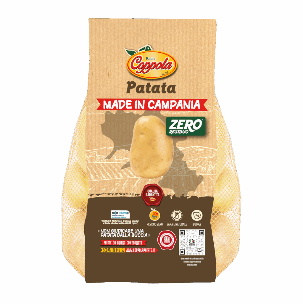 Coppola Patate è un’azienda incastonata nel cuore del beneventano. Leader nel settore pataticolo italiano, “Coppola Patate” ha saputo intrecciare la sua storia ad un territorio, che tutela da sempre. Specializzata nella produzione di patate di qualità premium, l’azienda a conduzione familiare ha sviluppato la linea “Residuo Zero”; le patate “Residuo Zero” sono un prodotto pregiato, pensato per il benessere dei consumatori, nel segno di una crescente consapevolezza verso la sostenibilità.