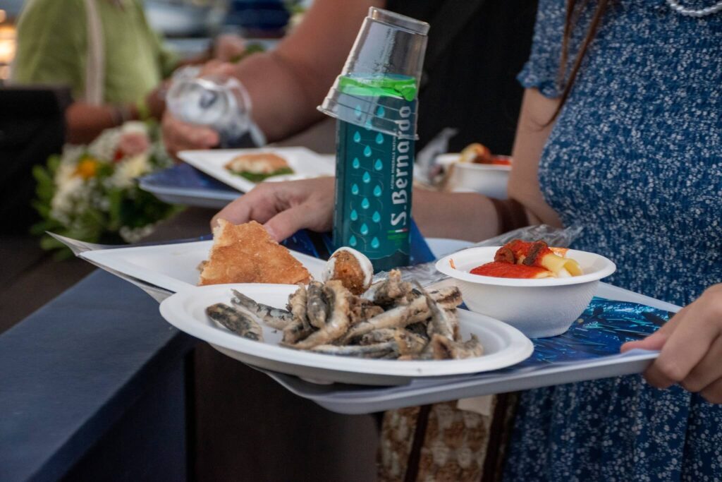 Possiamo ripartire dritti verso il porto di Cetara dove ci accolgono i profumi della gastronomia locale. Lungo il molo Madonnina Campus Lab ci serve il trancio di pizza alla marinara, i paccheri ripieni, l’immancabile frittura di alici e per finire babà e limoncello.