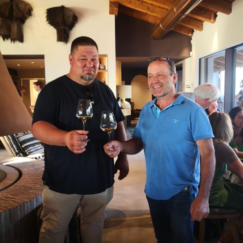Dopo il Friulano (con aromaticità erbacee e officinali, e finale ammandorlato) e il Sauvignon (in linea con i caratteri varietali del vitigno) entrambi 2024 di Branko, un energico Saša ci versa lo Slatnik 2022 che esegue 8/14 giorni di macerazione sulle bucce, un anno di maturazione in botte e almeno quattro mesi in bottiglia, che si rivela di un fruttato succoso e opulento, pesca e albicocca, con cenni floreali e finale minerale; e la Ribolla 2020 che segue la medesima vinificazione dello Jakot (macerazione delle bucce per circa tre mesi in tini troncoconici, in seguito matura per tre anni in botti da 25 e 35 ettolitri, e uno o due anni a seconda dei casi di affinamento in bottiglia), con sentori mielati, speziati e di albicocca disidratata, e che mantiene un sorso dinamico e fresco.