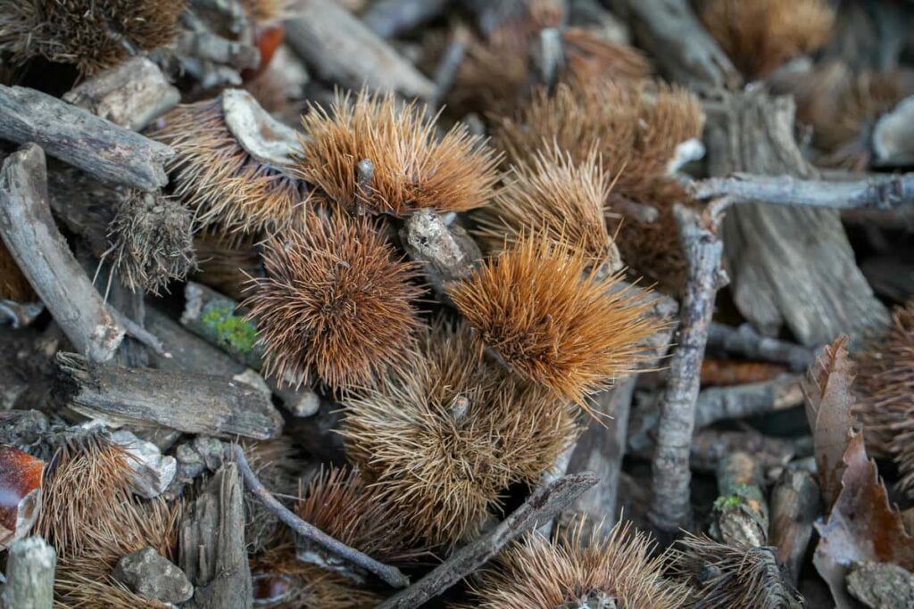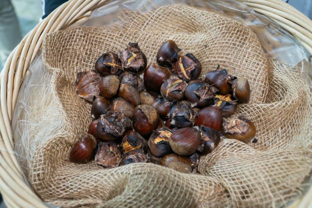 Dove c’era un castagno ci sarà sempre un altro castagno e così per secoli. Anche qui, come per la viticoltura, si possono realizzare sul campo vere e proprie selezioni clonali, per avere la miglior varietà nel contesto in cui crescere. E poi ci sono le tradizioni storiche, secolari, che narrano di coesione sociale, di famiglia e di aiuto ai più bisognosi. Quasi ovunque lungo il Distretto campano, la raccolta cessa il 1 novembre e dal giorno dei morti i ricci ancora a terra od in cima all’albero sono messi a disposizione della popolazione. Un retaggio del passato che significa lasciare del cibo per chi non poteva permettersi il pane. Con la differenza che la farina di castagne è adatta alle diete per celiaci, priva di sostanze allergeniche ed abbondante invece di tannini utili ai processi antiossidanti e di zuccheri complessi a lento rilascio glicemico.