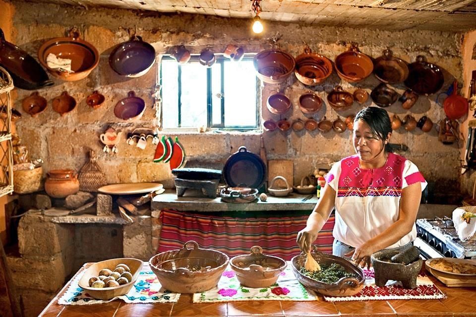 La cucina do Oaxaca è fatta di saperi antichi, ingredienti specifici e preparazioni, come quelle che vedono peperoncini, frijoles e spezie, selezionati con cura e preparati in un metate, un mortaio di pietra. La cucina oaxaqueña, oltre ai lunghi processi di tostatura e frittura degli ingredienti, seguiti da lunghe cotture, fonde sapori dolci a quelli aciduli, incorporando ingredienti tropicali come le banane, a formaggi, come il Quesillo, e alla panna acida. Le salse tipiche di Oaxaca sono i moles, il guacamole e la salsa molcajete, salsa piccante tradizionale, preparata con peperoncino morita tostato, pomodoro verde e aglio, il tutto pestato in un molcajete, un mortaio di pietra diverso nella forma rispetto al metate.