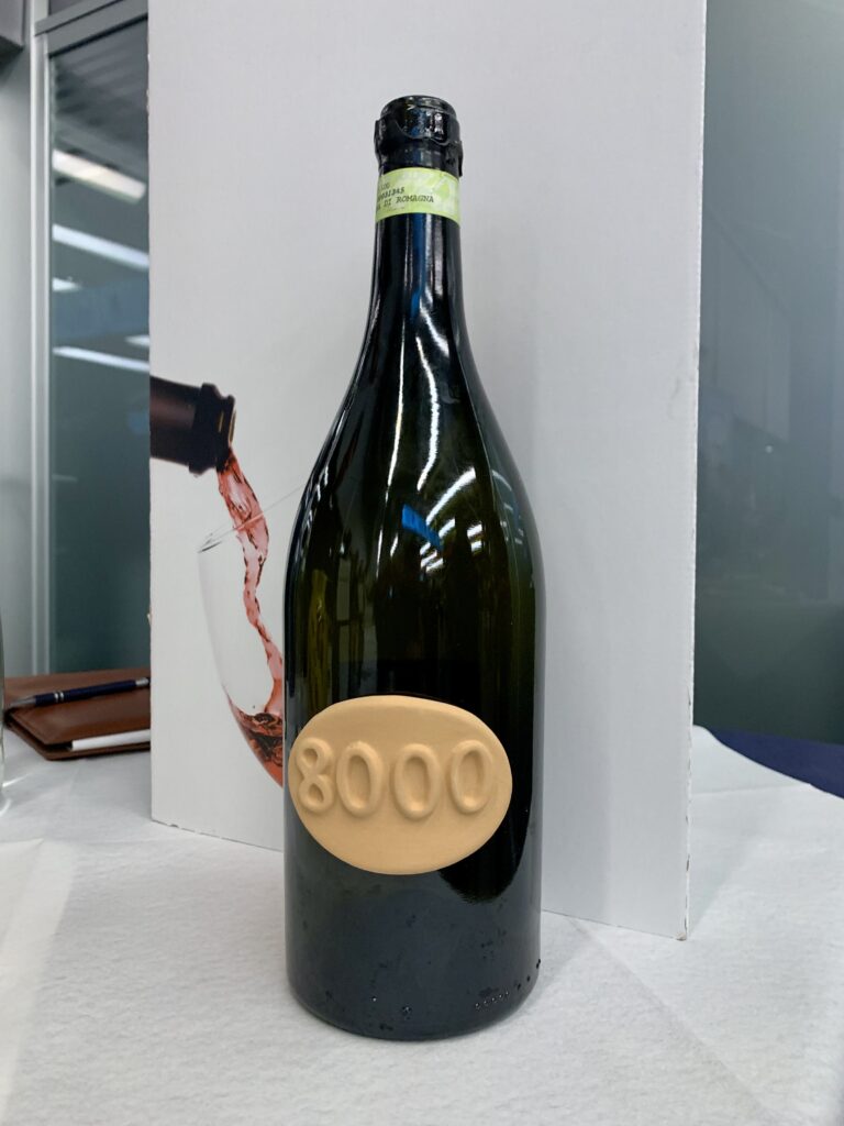 Anche questa è una nostra vecchia conoscenza che non vedevamo l’ora di degustare col vestito del 2022. Una versione che forse si discosta un po’ dalle precedenti, ma assolutamente in chiave positiva. 8000 è un’Albana che fermenta e affina in anfore georgiane, disponibile solo in formato Magnum per un richiamo alla tradizione del “boccione di vino” che si teneva a tavola. Oro zecchino luminoso e una consistenza che suggerisce estrazione rendono il calice molto suadente. Inizialmente percepiamo una leggerissima ossidazione tutt’altro che fastidiosa, che sparisco dopo qualche rotazione per lasciare spazio a un albicocca molto matura e a frutti tropicali come melone e papaja. Il vegetale non è la classica salvia, bensì abete, cipresso, resina. Un naso floreale delicato che ricorda un fiore d’acacia, anche per la sua tendenza mielosa. In bocca entra deciso, e la frutta matura che percepivamo all’olfatto lascia il posto a frutta più fresca e fragrante. Equilibrato da subito. Persistenza da record.