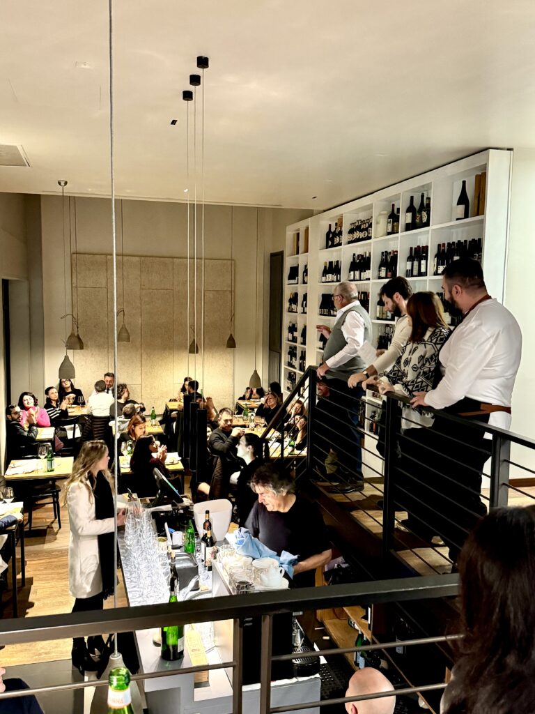 Filosofia culinaria raffinata e sempre sorprendente. Abilità nel bilanciare sapientemente i sapori e nel presentare piatti freschi e creativi. L’ambiente del ristorante è già invitante, con un’estetica moderna, dal taglio minimalista, che richiama la tradizione avvolgendo gli ospiti con discreta cura. I tavoli posizionati di fronte alla luminosa e ampia vetrata della cucina offrono una vista coinvolgente sul lavoro della brigata, durante la preparazione delle portate.