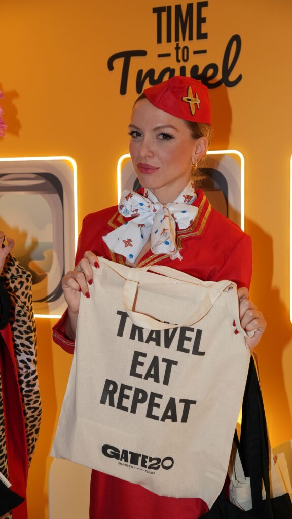 Il Gate 20 – Burger Tour offre un’esperienza culinaria unica, permettendo di scegliere piatti stranieri dal vasto menù o di optare per un percorso food personalizzato, ispirato alla destinazione preferita. Il tutto in un’ambientazione completamente tematizzata sul mondo dei viaggi e degli aeroporti. All’ingresso, i clienti vengono accolti con indicazioni come “Check-in”, “Partenze” e “Bagagli”, che contribuiscono a ricreare l’atmosfera di un terminal, offrendo un’esperienza immersiva a chi desidera assaporare piatti tipici intercontinentali senza lasciare la propria città.