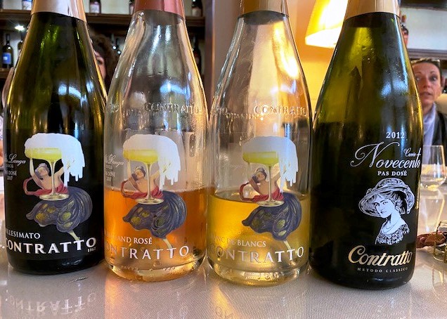 - BACCO D’ORO BRUT – Alta Langa DOCG 80% Pinot Noir, 20% Chardonnay, spumante storico della cantina, il Bacco d’Oro è l’unico spumante dosato prodotto da Contratto. Al naso si apre con sentori intensi di fiori di pesco, miele e frutta secca; sentori di pane tostato o brioche. Cremoso e avvolgente, equilibrato, con una piacevole freschezza che bilancia la sua struttura, regala note di frutta matura e agrumi e marzapane. Il perlage fine e cremoso. Almeno 42 mesi di affinamento sui lieviti. Il remuage avviene manualmente.