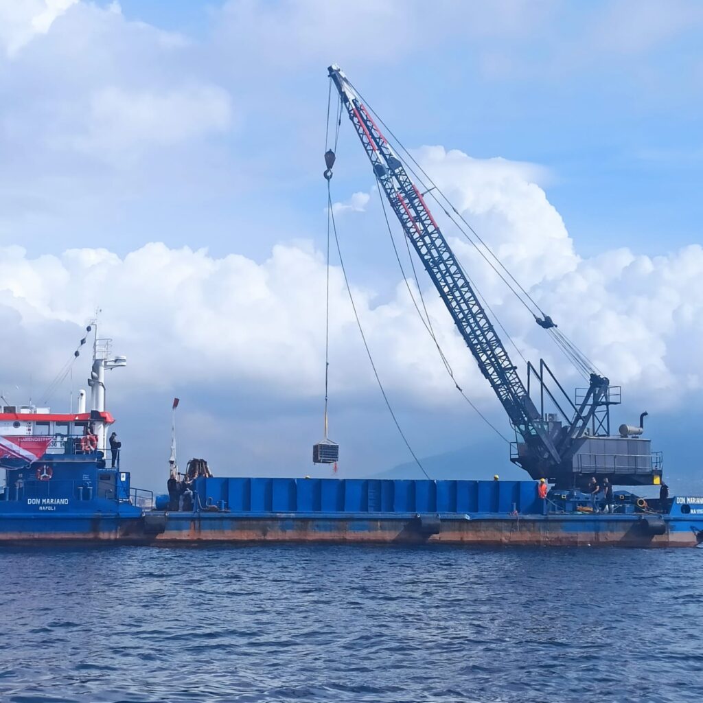 Cantine Carputo, cantina con sede storica a Quarto (NA), è stata protagonista, lo scorso 24 ottobre, del primo cantinamento sommerso nel braccio di mare antistante Castel dell’Ovo. A occuparsi dell’operazione, partita del Molo San Vincenzo, è la società Megaride Cantine Sommerse di Francesco Lerro, dopo l’autorizzazione da parte del Demanio – nel gennaio 2024 – ad una cantina sommersa di oltre un chilometro di superficie a 40 metri sotto il livello del mare.