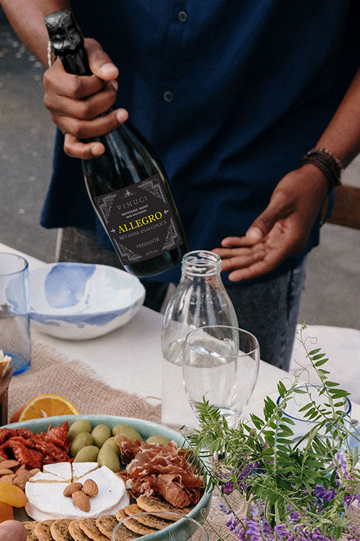 L’azienda produce 5 tipologie, partendo da una base di vino intorno al 93-94%, da mosto d’uva rettificato o succo di frutta, anidride carbonica per quanto concerne la tipologia frizzante. I vini utilizzati provengono in maggior parte dalla Germania e con una base riesling si ottiene Allegro, un vino frizzante dealcolato con sentori che ricordano la frutta gialla matura e gli agrumi. Sicuramente non si può approcciare questa tipologia pensando di trovarsi di fronte a un calice con i profumi e le sensazioni che ci potremmo aspettare dal vitigno dichiarato in etichetta; questo non vuol dire che si possano trovare esempi interessanti, in cui si ritrova una piacevolezza dell’assaggio. Allegro è tra questi ed è stato premiato con il bollino rosso di The Wine Hunter.
