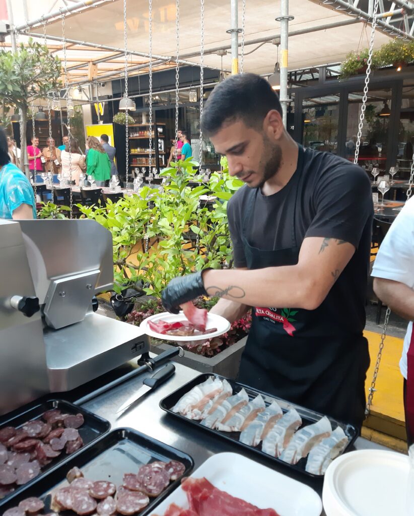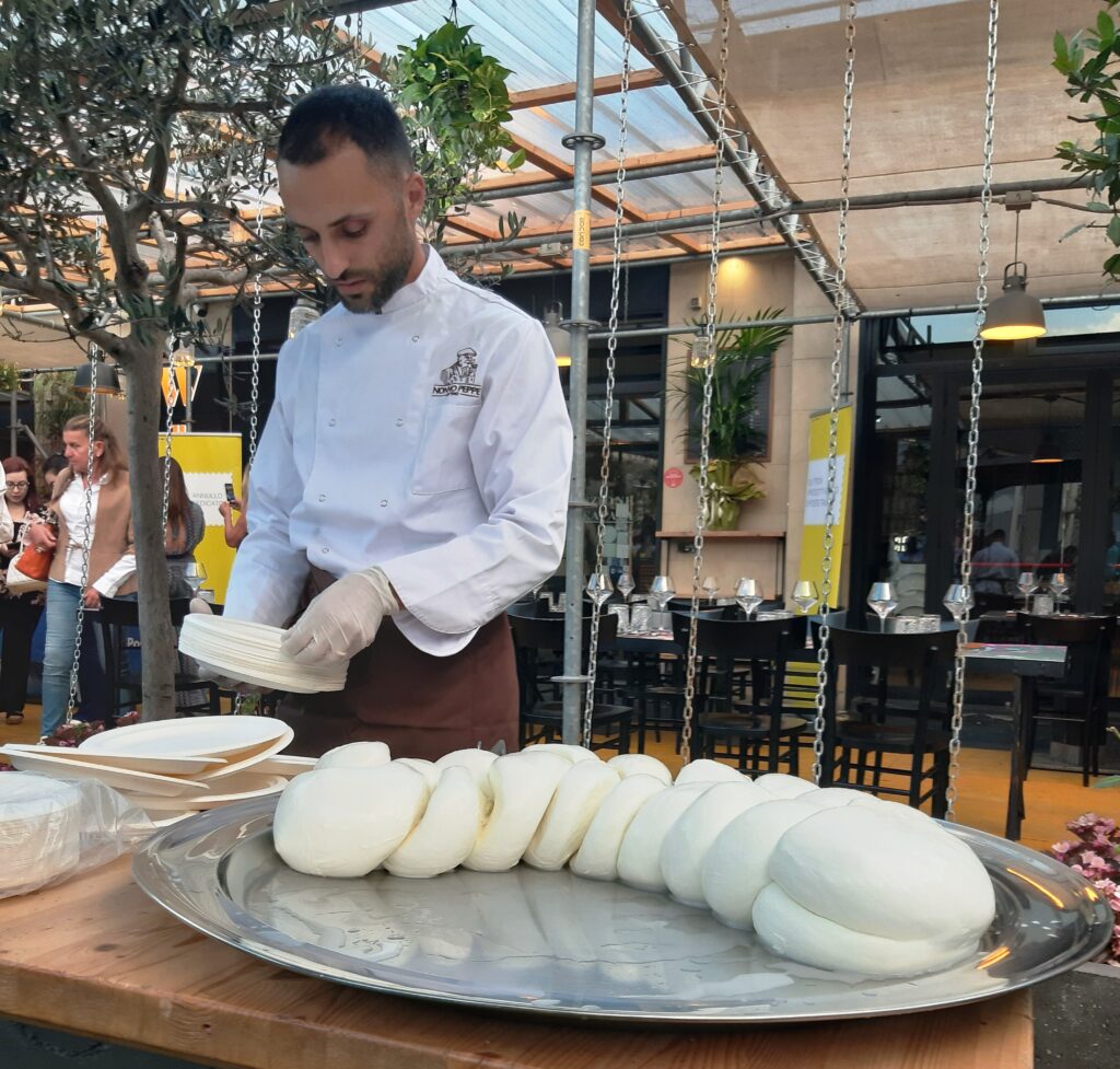 Gli affettati richiamano necessariamente, almeno al Sud Italia, la mozzarella, specie se di Bufala come quella proposta dal treccione del Caseificio Nonno Peppe a Marina di Eboli (SA). Infine, per placare la sete i gin di Prisco Sammartino di Officine Alkemiche Spirits per un abbinamento intrigante anche con la pizza, e il beverage di Perrella Distribuzione che segue i migliori locali della Regione.
