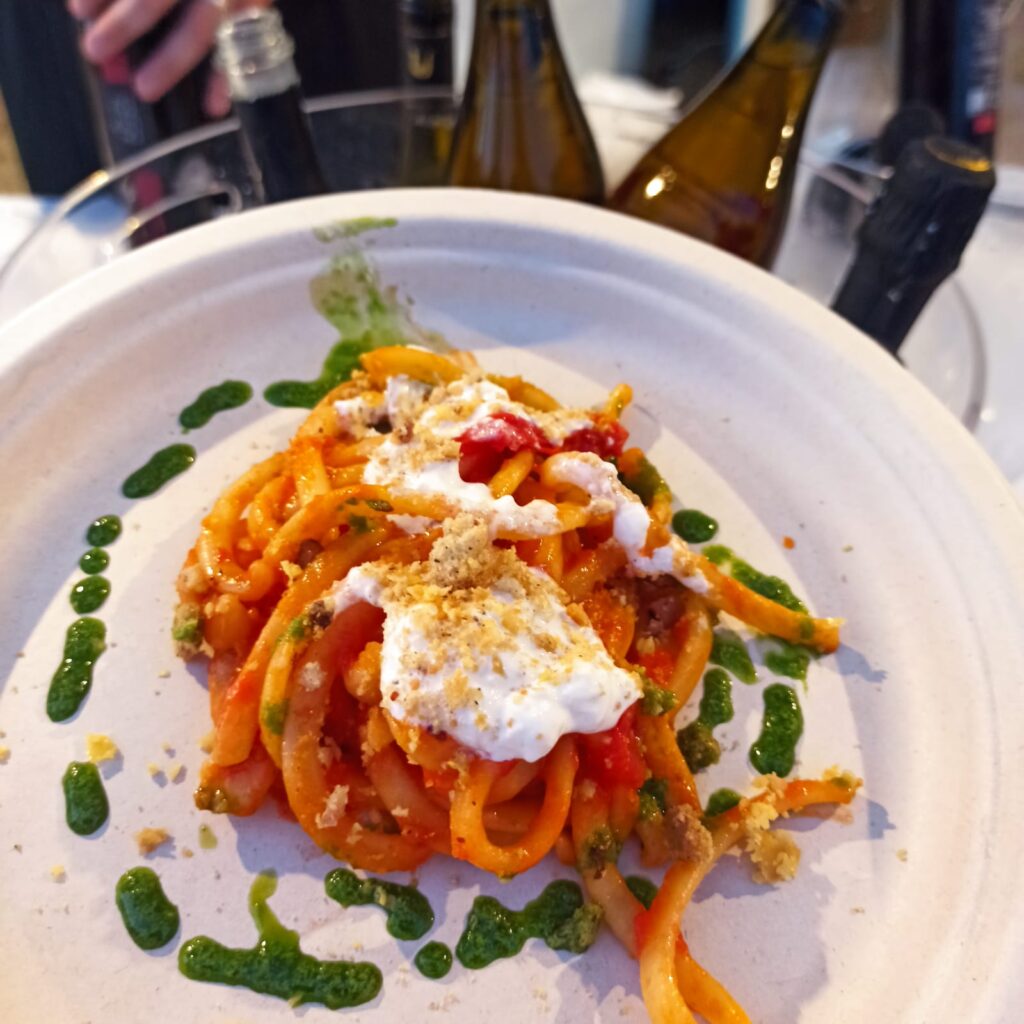 Dopo la visita agli scavi di Cuma con una guida d’eccezione – Fabio Pagano, direttore del Parco Archeologico – abbiamo avuto l’occasione di degustare il pomodorino, declinato in varie proposte gastronomiche, grazie alla partecipazione di numerosi professionisti locali della ristorazione.