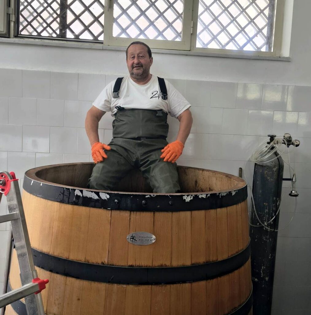 E poi la bellezza pura e sincera di vedere il professore impegnato ancora in quelle pratiche di rimontaggio artigianale, quasi “casalingo”, mentre si immerge fino alle braccia all’interno dei fusti di castagno aperti.