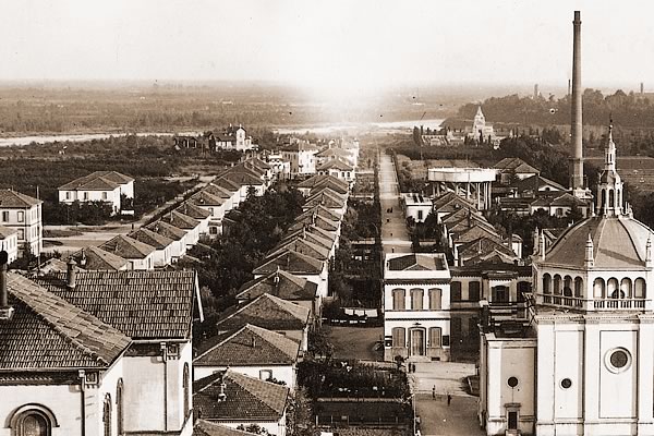 Nel 1878, quando iniziarono i lavori per la costruzione del villaggio qui non c’era praticamente nulla: solo boscaglia e qualche robinia.