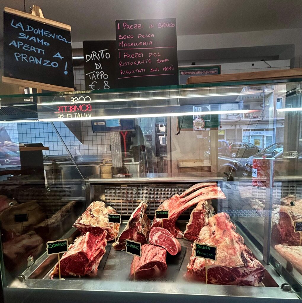 Premetto che negli anni 70’, ho fatto le mie prime esperienze lavorative adolescenziali nell’ottima macelleria di mio zio che mi permetteva di guadagnare una piccola paghetta settimanale. Ebbene, la sobrietà dei locali di MacelleGria, sia per il colore delle pareti o un arredamento senza tanti fronzoli, sia per il banco espositivo delle carni e dei preparati gastronomici fatti con esse, mi hanno portato indietro nel tempo.