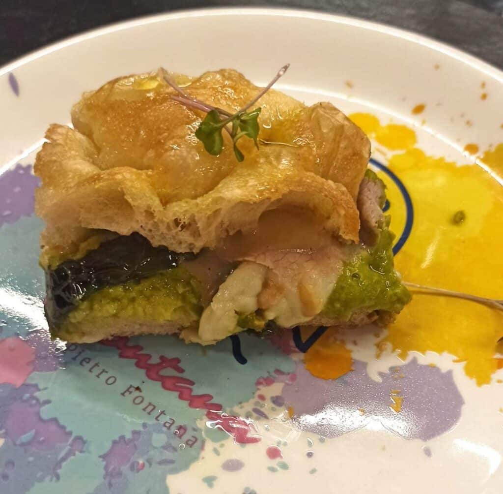 La proposta pizze di Pietro Fontana si contraddistingue per la stagionalità, la scelta accurata e la lavorazione delle materie prime, cosicché l’impasto con lievito madre al 95% di idratazione e settantadue ore di lievitazione diventa la base di un vero e proprio piatto a sé stante.