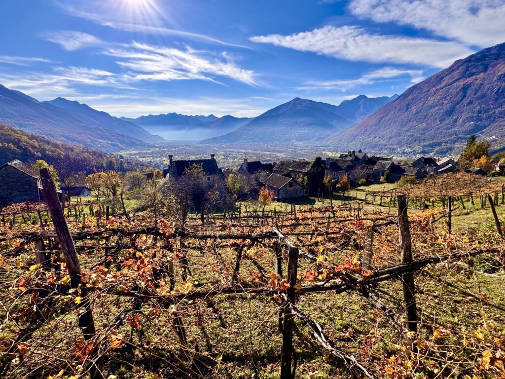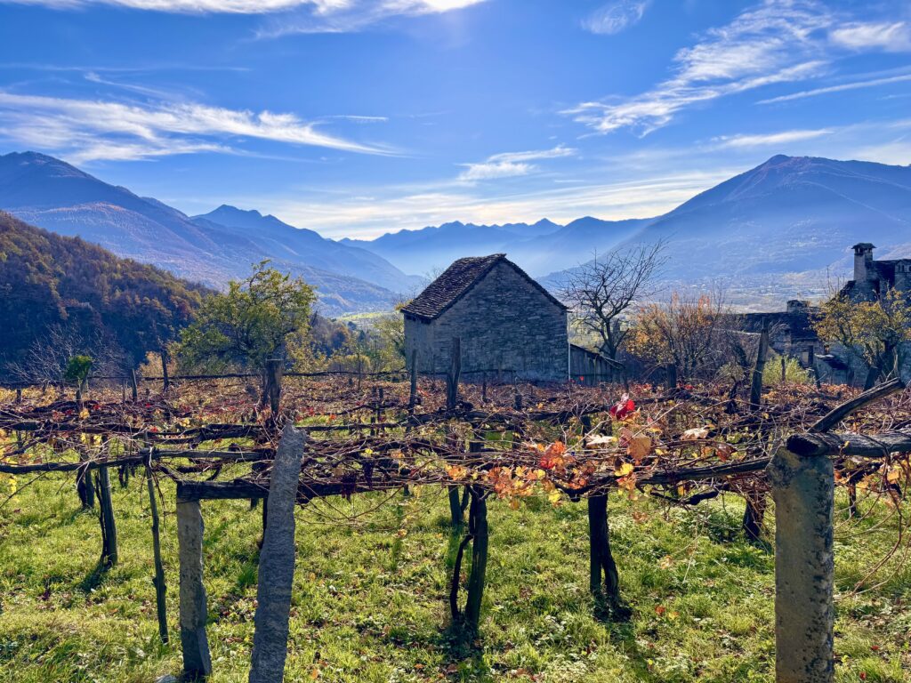 Le vigne di Montecrestese sono piccole, preziose, scolpite nella montagna. Qui maturano uve quasi eroiche, allevate in pendenza, esposte al vento, con un clima alpino che regala escursioni termiche e profumi nitidi. L’uva qui si concentra, si asciuga, si riempie di montagna: aromi puliti, freschezza, mineralità, una schiettezza che è identità.