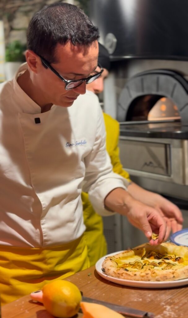 I tagliolini di limone sfusato amalfitano preparati dinanzi agli ospiti dallo Chef Resident Claudio Lanuto, hanno costituito un inno alla solarità della bella Costiera e un degno preludio alle pizze del maestro Sorbillo.