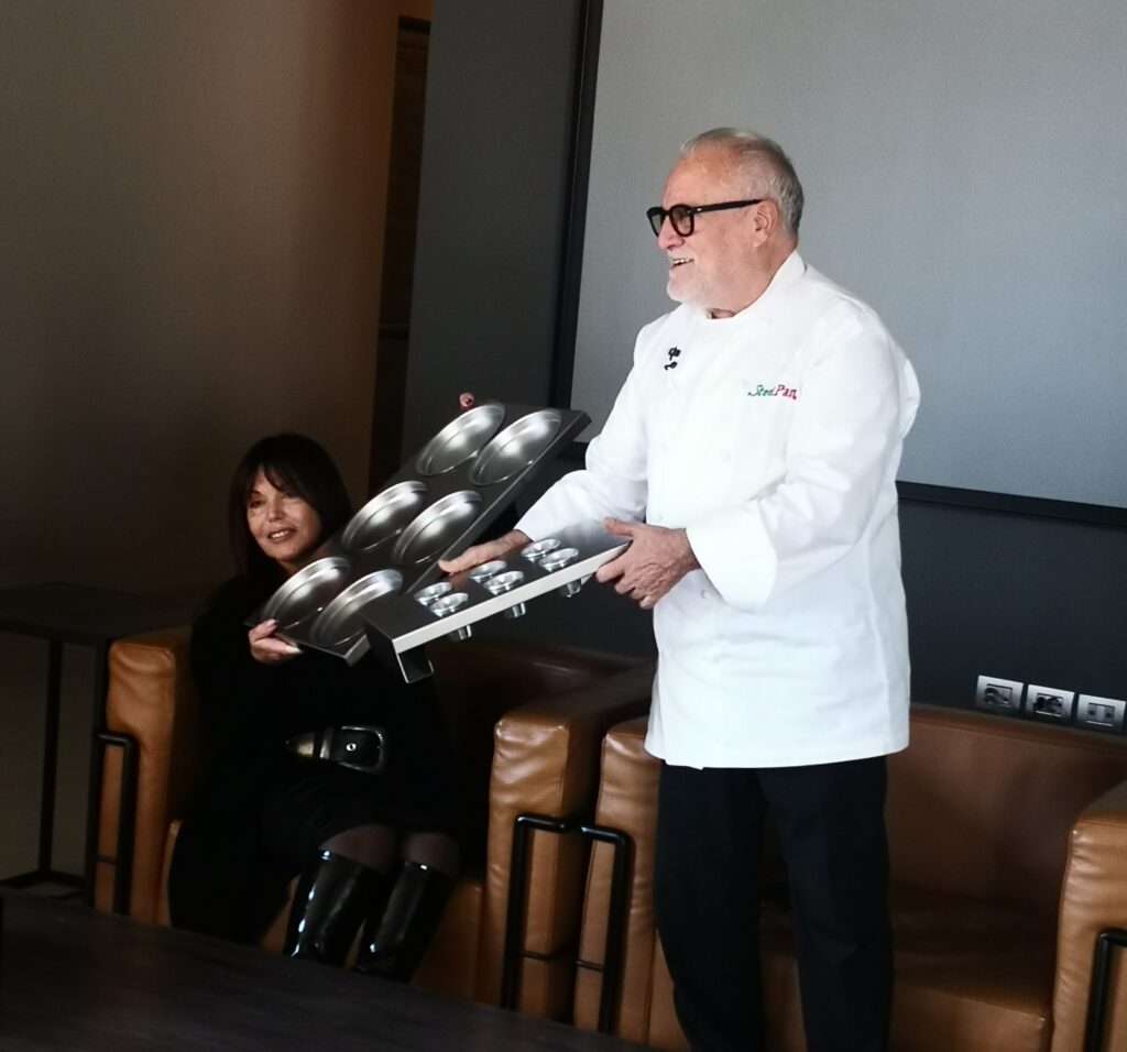 Lo chef neo eletto per accogliere con la sua cucina gli atleti dell’olimpiade invernale di Milano-Cortina, è anche la nuova firma delle pentole Steel Pan Master, una linea brevettata e disegnata dall’imprenditrice Carmen Dollo.
