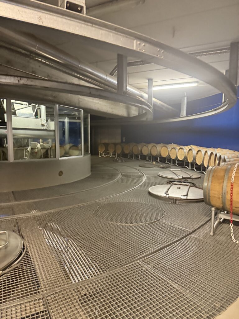 L’architettura della cantina, progettata nel 1995, riflette l’approccio ecologico dell’azienda, con una struttura a basso consumo energetico costruita con materiali naturali come legno e pietra, e dotata di impianti fotovoltaici e sistemi di recupero del calore .