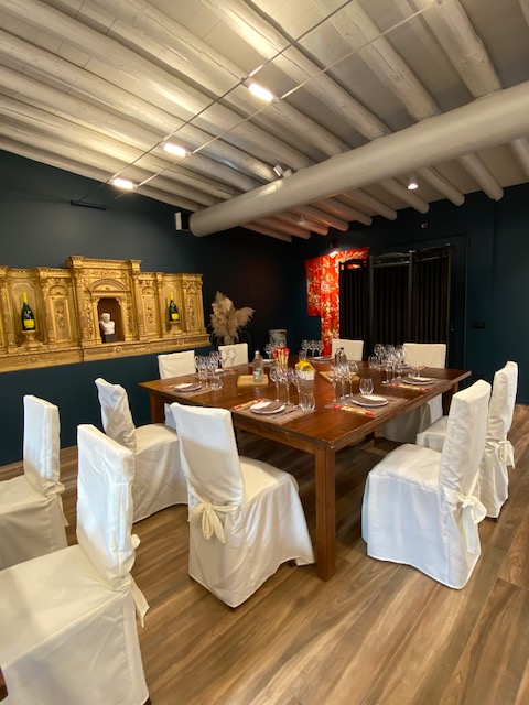 Con gli occhi colmi di arte e lo spirito nutrito da tanta bellezza e creatività, ci spostiamo nella sala degustazione anche qui l’arte la fa da padrona.