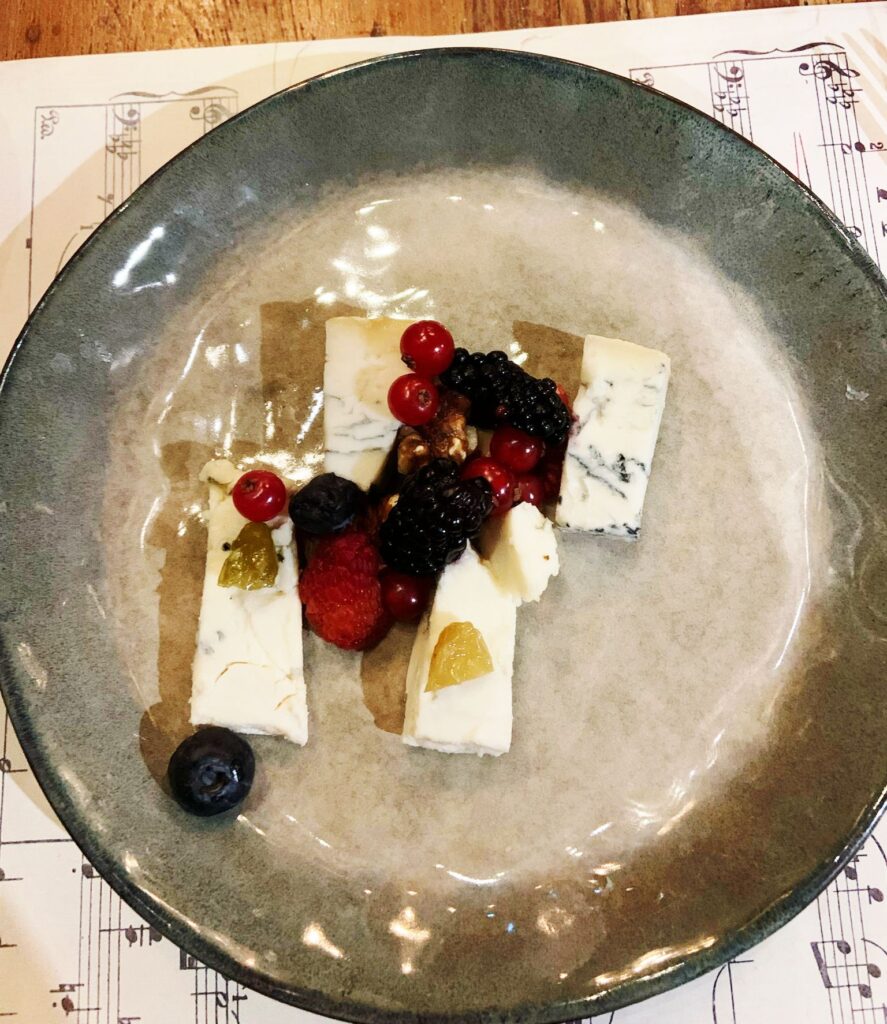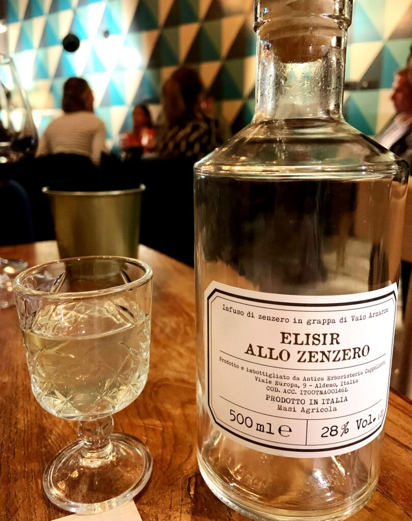 Chiusura su un plateau di formaggi erborinati a base di latte di pecora e bufala, ben sorretti dall’avvolgenza del Recioto della Valpolicella Classico Docg “Angelorum” Masi e sulle frittole veneziane (simili alle zeppole partenopee) con crema al limone di Sorrento con un calice di Elisir allo zenzero in Grappa di Amarone Masi.