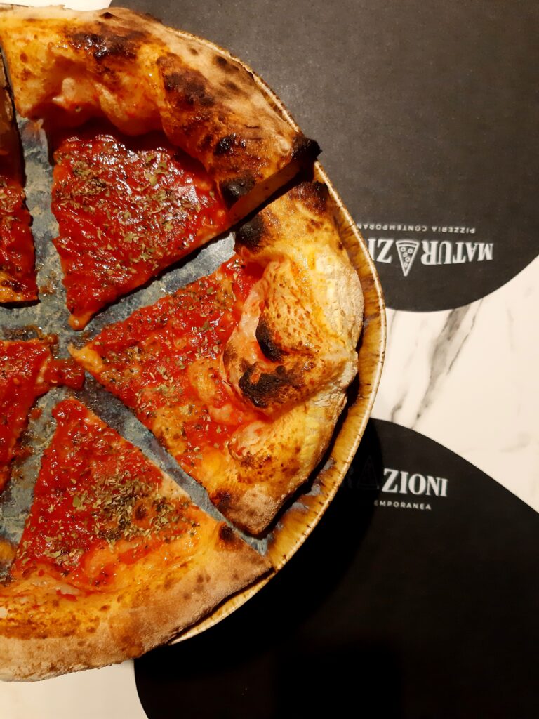 La selezione dal menù pizze prevede invece l’immancabile Marinara con pomodorino San Marzano schiacciato a mano, pesto di aglio Orsino e origano di collina del Monte Saro. La valutazione complessiva sul lavoro di un bravo pizzaiolo si nota proprio nelle pizze tradizionali come questa o come la Margherita, la vera “regina”.