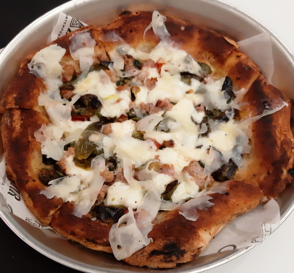 A tal riguardo di notevole complessità è la versione doppio crunch con tre fasi di lievitazione di cui la prima a vapore e tre cotture, incluso un particolare shock termico per dare maggior friabilità al morso. Condimento realizzato da parmigiana con provola, formaggio Stravecchio di Bruna Alpina e datterino dry. Una pizza da condivisione, dove ogni fetta lascia il segno nel palato e nella mente dell’avventore.