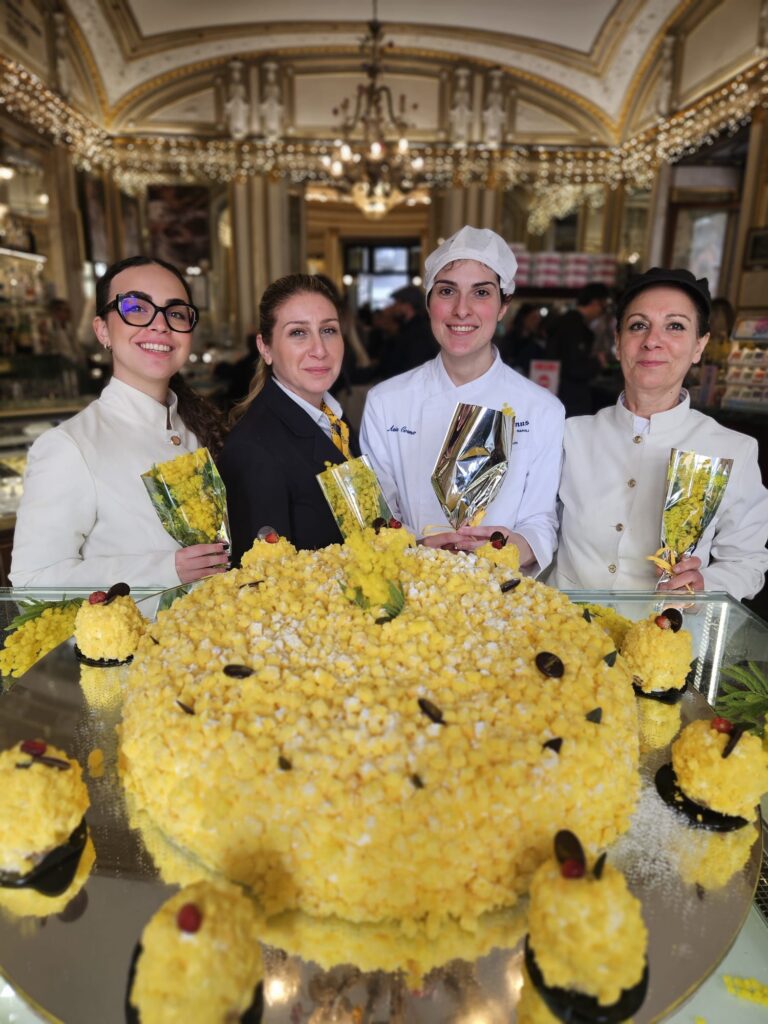 Napoli, al Gran Caffè Gambrinus una gigantesca torta “Mimosa” per festeggiare tutte le donne