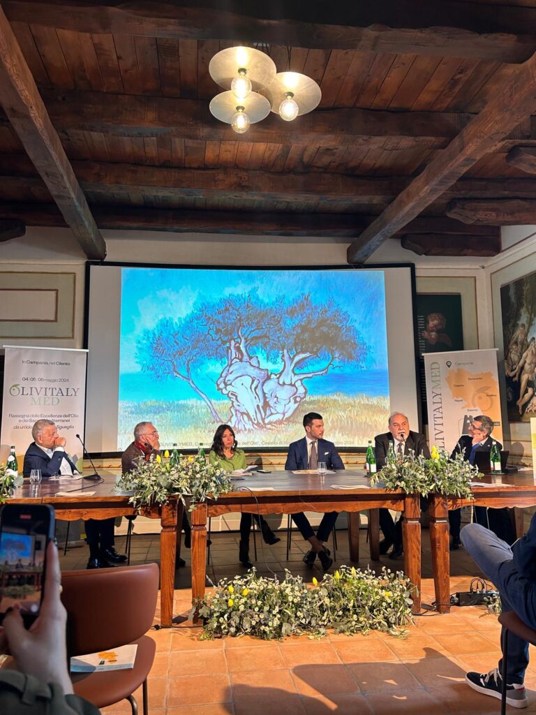 Sulla sua importanza alimentare e sulle sue virtù salutistiche si è incentrata la seconda parte degli interventi: il professor Raffaele Sacchi Ambasciatore della Dieta Mediterranea per il Museo di Pollica e Coordinatore del Corso di Laurea triennale in “Scienze Gastronomiche Mediterranee presso l’Università degli studi di Napoli Federico II di Portici, ha sottolineato come la ricerca abbia identificato l’insetto più antagonista della mosca olearia, il Myopites Stylata, ospite svernante della pianta Inula Viscosa, che va così diffusa negli incolti delle aree olivetate.