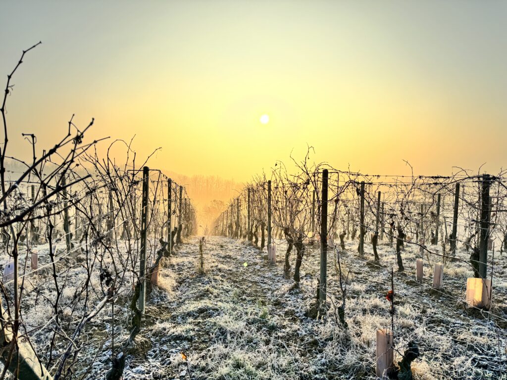 È mattino presto, la brina e i primi raggi del sole fanno capolino tra le nebbie che lentamente si diradano, scoprendo le dolci colline del Monferrato, localmente chiamate “bricchi”. Mentre il sole lentamente sale, i colori tenui dal rosa all’arancio tingono i vigneti e i raggi fanno brillare i cristalli di ghiaccio sulle viti di Barbera. Si respira un profumo di storia su queste colline patrimonio dell’ UNESCO dal 2014 e che per secoli hanno visto avvicendarsi eventi che hanno fatto la storia d’Italia.