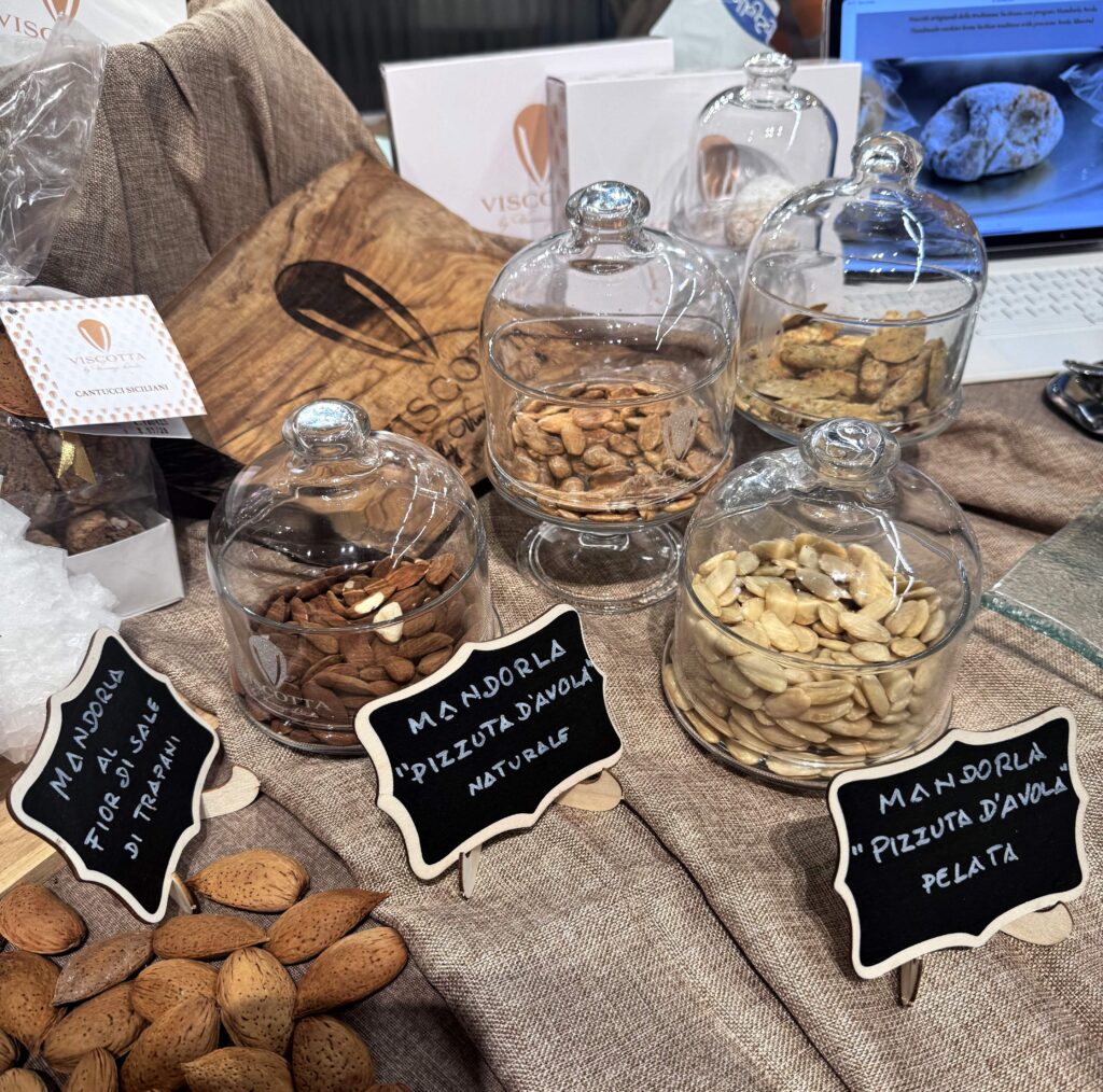Viscotta – Avola (Sicilia) – I prodotti dolciari Viscotta sono al 100% artigianali e lavorati a mano dalla Pastry Chef Vincenza Loreto, contengono solo mandorle varietà pizzuta di Avola, certificate dal Consorzio Mandorla di Avola. Le più pregiate per qualità e rinomata per il gusto ricco e delicato, dalle caratteristiche uniche, con la loro forma allungata e leggermente curva, il guscio liscio e duro e dai piccoli pori. All’interno si presentano piatte e marroni, profumatissime e delicate. www.viscotta.com